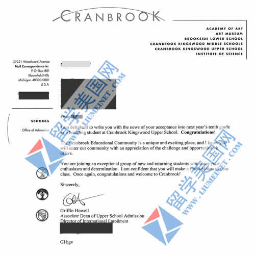 恭喜留学美国网G同学被全美顶尖克莱布鲁克中学(Cranbrook Schools)录取。G同学是一个学霸级的学生,在校期间荣获很多荣誉,在申请美高时SSAT考了接近满分成绩。