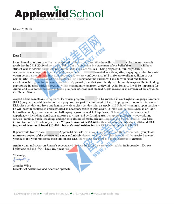 恭喜留美网Z同学获得 APPlewild School 录取offer!