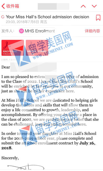 恭喜G同学补录到Miss Hall's School(寄宿排名79),感兴趣的同学可以马上咨询:400-000-7805,010-65183908,微信:liumeinet2014
