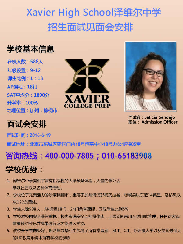 【6.19】Xavier High School泽维尔中学招生面试会