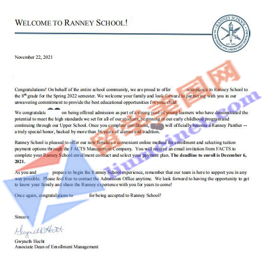 学校网址:https://www.ranneyschool.org